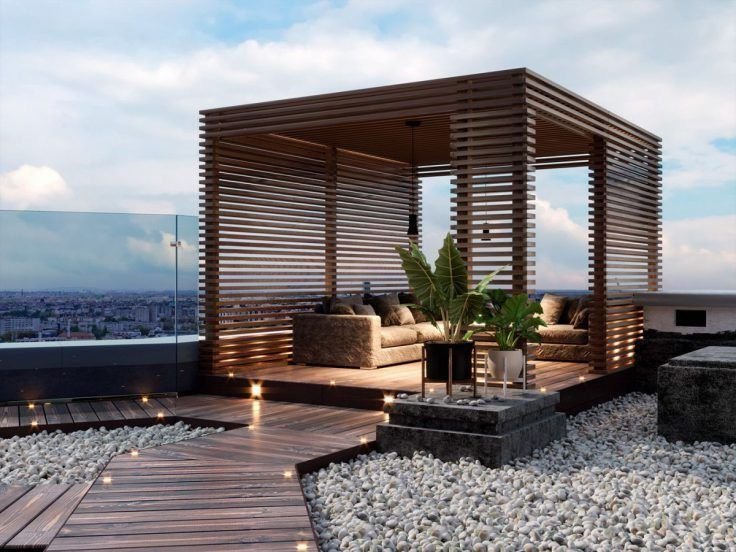 A gazebo is a freestanding, open-sided outdoor structure with a roof, ideal for gardens, parks, or patios. It provides shade, shelter, and a relaxing space for gatherings or leisure.
