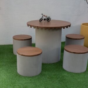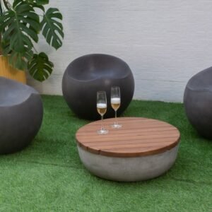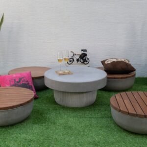 Our outdoor furniture is designed to be the epitome of resilience, ready to confront the harshest weather conditions without compromising on aesthetics. The GFRC concrete ensures a robust foundation, offering unparalleled strength and stability, while the Thermo-treated wooden elements add warmth and natural beauty to each piece.
