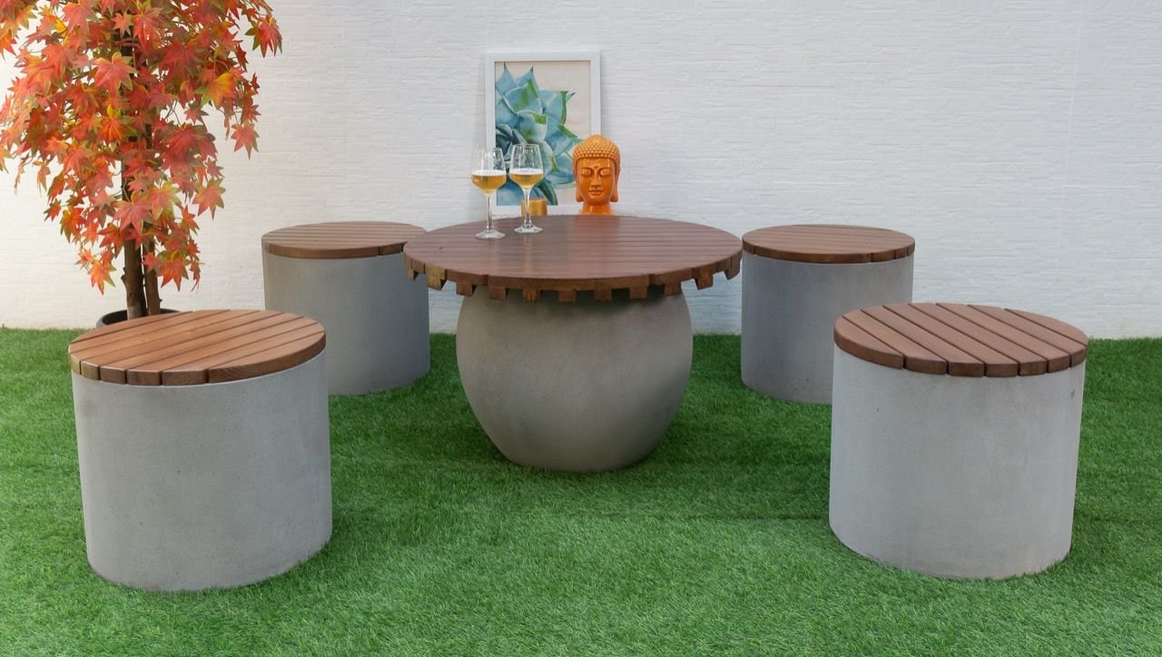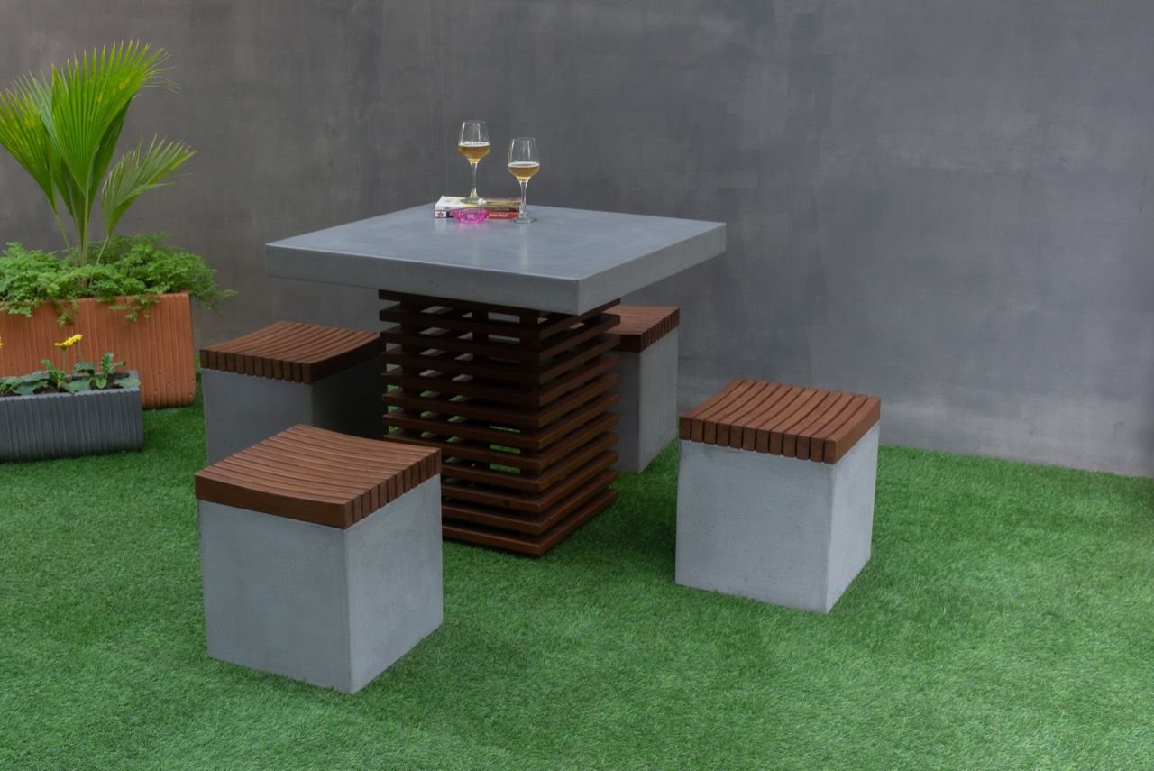 Immerse yourself in the perfect blend of form and function as you unwind in style on our weather-resistant, visually striking outdoor furniture. Embrace the outdoors with confidence, knowing that your furniture is not just an addition to your space but a resilient companion that enhances the allure of your surroundings. Experience the harmony of design and durability with our GFRC concrete and Thermo-treated wooden outdoor furniture collection.